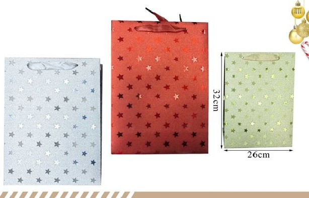 AJÁNDÉKTÁSKA CSILLOGÓ 26X32X10CM 3F.