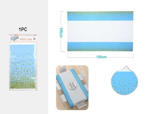 ASZTALTERÍTŐ 180X108CM KÉK-FEHÉR-ARANY PÖTTYÖKKEL