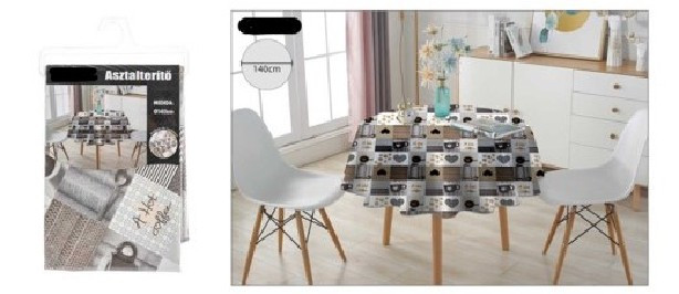ASZTALTERÍTŐ KEREK 140CM KÁVÉ MINTA MŰA.