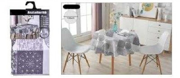 ASZTALTERÍTŐ KEREK 140CM KLASSZIKUS GEOMETRIA MINTA POLIÉSZTER