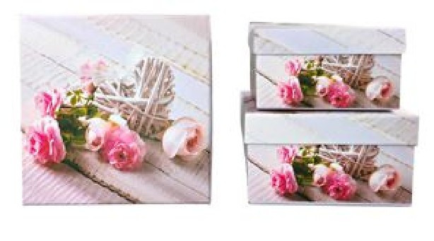DÍSZDOBOZ SZETT 3R. NAGY:16X16X9CM PAPÍR, VIRÁG MINTÁS