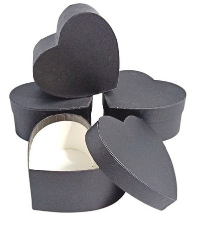 DÍSZDOBOZ SZÍV ALAKÚ 11X10X5,2CM  PAPÍR, FEKETE 6DB-OS