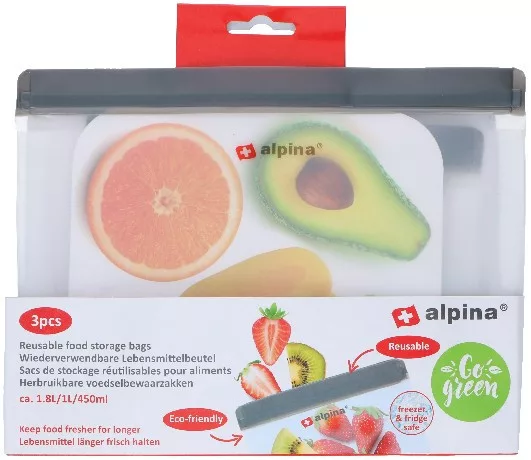 ÉTELTÁROLÓ TASAK VISSZAZÁRHATÓ 3DB-OS 19X26X6CM 1,8L/1L/450ML MŰA., ALPINA