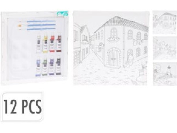 FESTŐSZETT VÁSZON 12DB-OS (1 VÁSZON - 3 ECSET - 8 FESTÉK (12ML) - 1 PALETT) 3F.