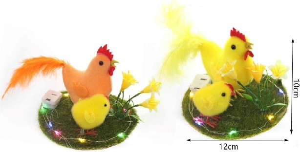 HÚSVÉTI DEKOR TYÚKANYÓ ÉS CSIBE 10X12CM LED-ES