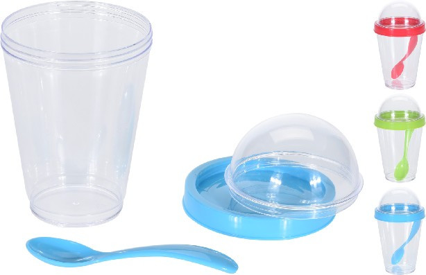 JOGHURTOS POHÁR DUPLA TETŐVEL ÉS KANÁLLAL MŰANYAG 350ML 3F