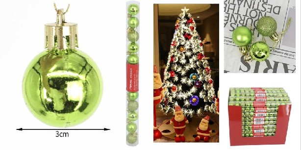 KARÁCSONYFA GÖMB DÍSZ 3CM 12DB TUBUSOS GYÜMÖLCSZÖLD