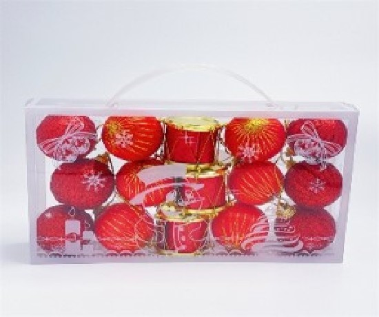 KARÁCSONYFA GÖMB DÍSZ 4CM PIROS 15DB-OS
