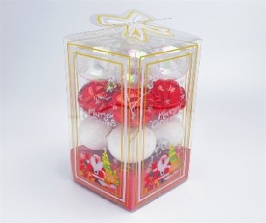 KARÁCSONYFA GÖMB DÍSZ 5CM PIROS-FEHÉR 16DB-OS