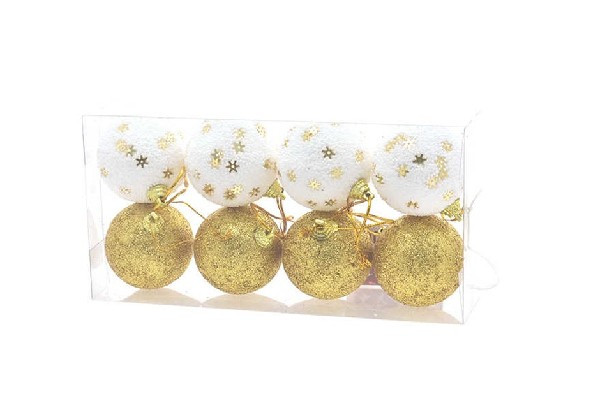 KARÁCSONYFA GÖMB DÍSZ MŰA. 2F. 6CM FEHÉR ÉS ARANY 8DB