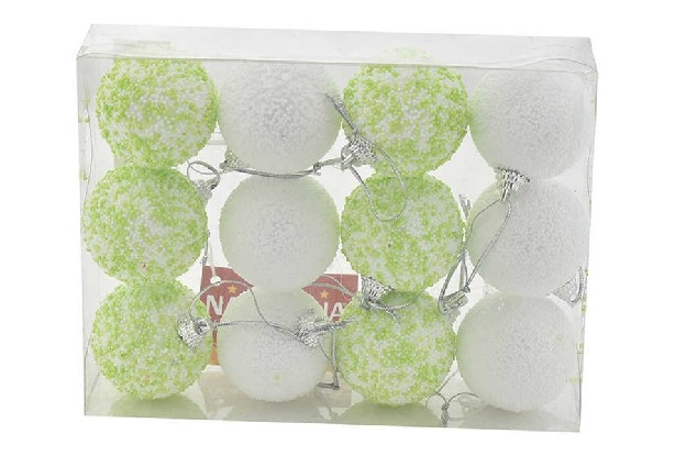 KARÁCSONYFA GÖMB DÍSZ MŰA. 2F. FEHÉR ÉS ZÖLD 8DB