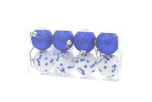 KARÁCSONYFA GÖMB DÍSZ MŰA. 6CM 2F. FEHÉR ÉS KÉK 8DB