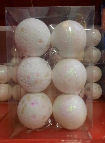 KARÁCSONYFA GÖMB DÍSZ MŰA. 7CM FEHÉR 6DB