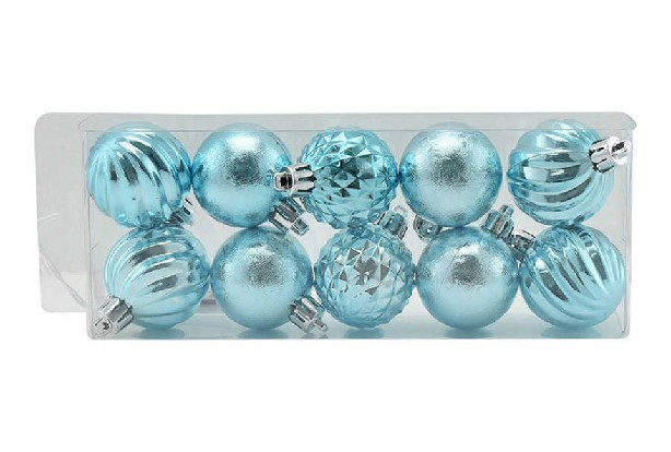 KARÁCSONYFA GÖMB DÍSZ MŰA. TÖBBFÉLE VILÁGOSKÉK 8DB