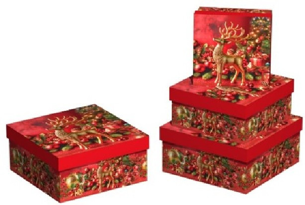 KARÁCSONYI AJÁNDÉKDOBOZ 3 RÉSZES 17X17X9,5CM 15X15X8,5CM 13X13X7,5CM