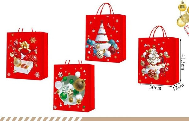 KARÁCSONYI AJÁNDÉKTASAK 41,5X30X12CM 4F. PIROS