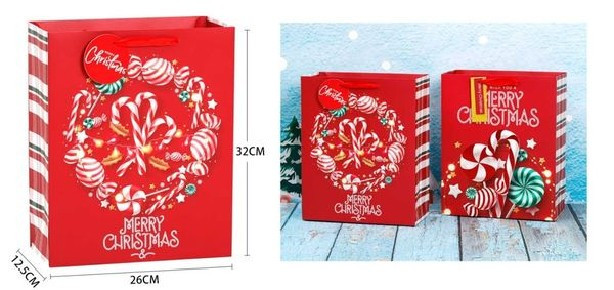KARÁCSONYI AJÁNDÉKTASAK "PÁLCIKA" 26X12,5X32CM PIROS