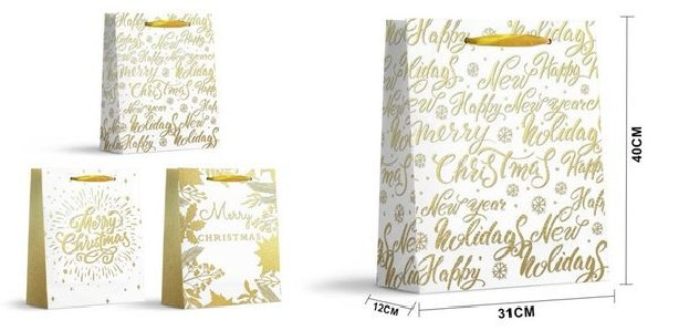 KARÁCSONYI AJÁNDÉKTÁSKA 31X40X12CM FEHÉR ARANY