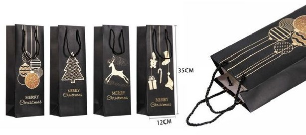 KARÁCSONYI BOROSTÁSKA 12X35X9CM FEKETE
