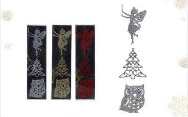 KARÁCSONYI DÍSZ DOBOZOS MEDÁLKÉSZLET "BAGOLY, KARÁCSONYFA ÉS ANGYAL" 5DB