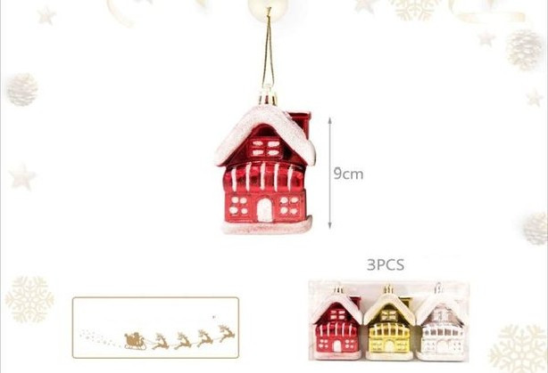 KARÁCSONYI DÍSZ "HÁZ" 9CM 3DB