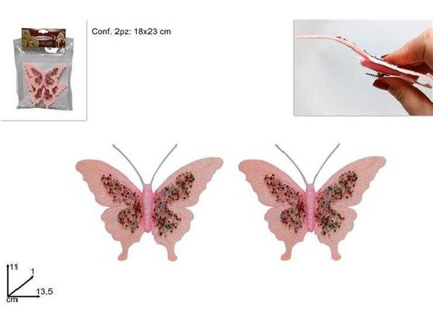 KARÁCSONYI DÍSZ PILLANGÓ CSIPTETŐS RÓZSASZÍN 2DB-OS 18X23CM