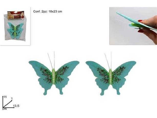 KARÁCSONYI DÍSZ PILLANGÓ CSIPTETŐS ZÖLD 2DB-OS 18X23CM