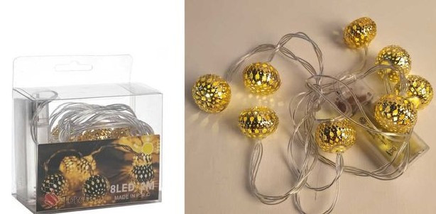 KARÁCSONYI ÉGŐSOR 3,2CM ARANY GOLYÓ 8DB 2M