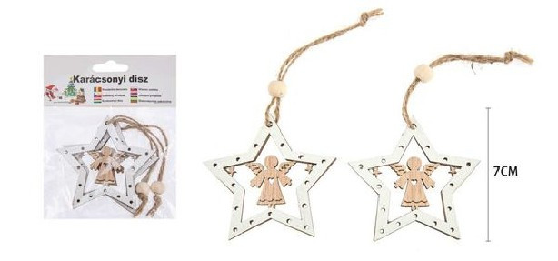 KARÁCSONYI FÜGGŐDÍSZ FA ÖTÁGÚ ÜREGES CSILLAG 2DB 7CM
