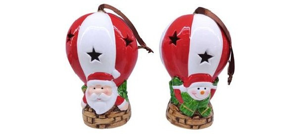 KARÁCSONYI KERÁMIA DÍSZ FÜGGŐ MELEGÍTŐLÁMPA "HŐLÉGBALLON" 2F.