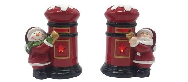 KARÁCSONYI KERÁMIA DÍSZ  MELEGÍTŐLÁMPA "POSTALÁDA" 2F.