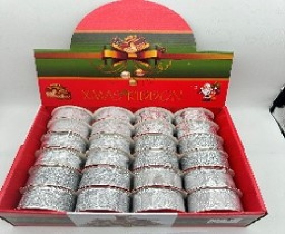 KARÁCSONYI SZALAG 3,8CM X 2,7M EZÜST 24DB/DISPLAY