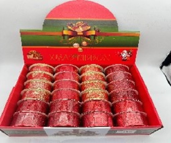 KARÁCSONYI SZALAG 3,8CM X 2,7M PIROS 24DB/DISPLAY