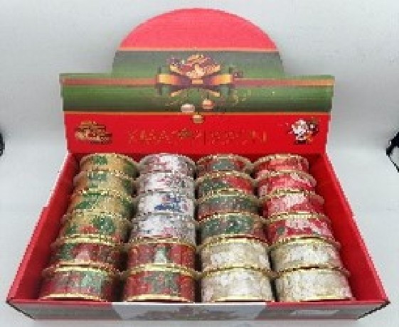 KARÁCSONYI SZALAG 3,8CM X 2,7M TÖBBFÉLE 24DB/DISPLAY