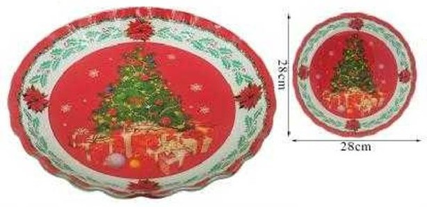 KÍNÁLÓ ÜVEG KEREK HULLÁMOS SZÉL KARÁCSONYI 28X28CM