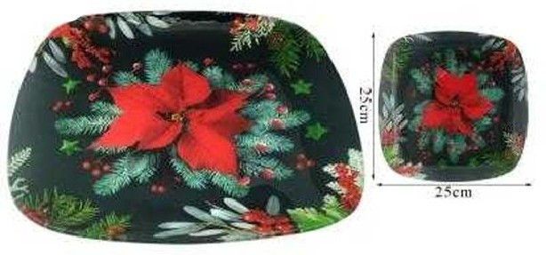 KÍNÁLÓ ÜVEG LEKEREKÍTETT NÉGYZET KARÁCSONYI 25X25CM