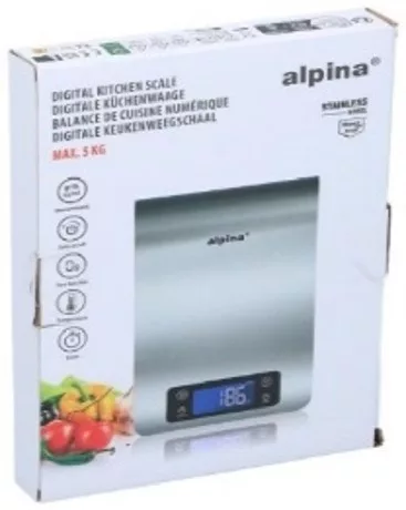 KONYHAI MÉRLEG 3 FUNKCIÓS AKASZTHATÓ 24X16,8X2CM ROZSDAMENTES, ELEM NÉLKÜL ALPIN