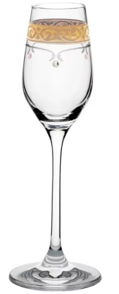 LIKŐRÖSPOHÁR 2DB-OS KRISTÁLYBERAKÁSSAL DÍSZÍTETT, ARANYOZOTT SZÉLŰ 95ML