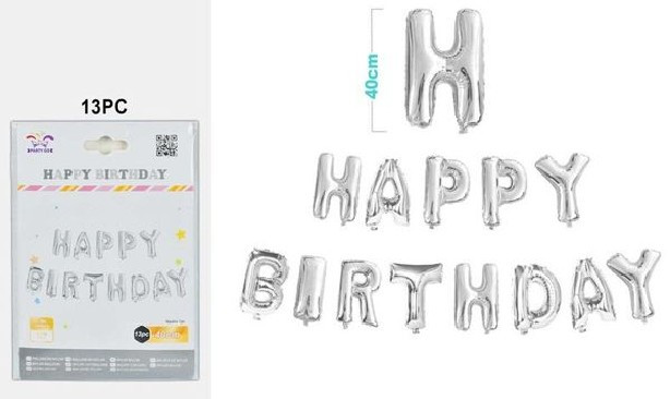 LUFI SZETT 13DB-OS "HAPPY BIRTHDAY" FELIRAT M:40CM EZÜST