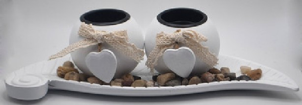 MÉCSESTARTÓ FA, FEHÉR, LÓGÓ SZÍV DEKORRAL