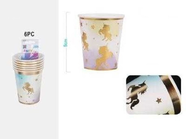 POHÁR PAPÍR ARANY UNIKORNIS 9,5CM 6DB-OS
