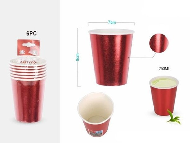 POHÁR PAPÍR FÉMES VÖRÖS 9CM 6DB-OS