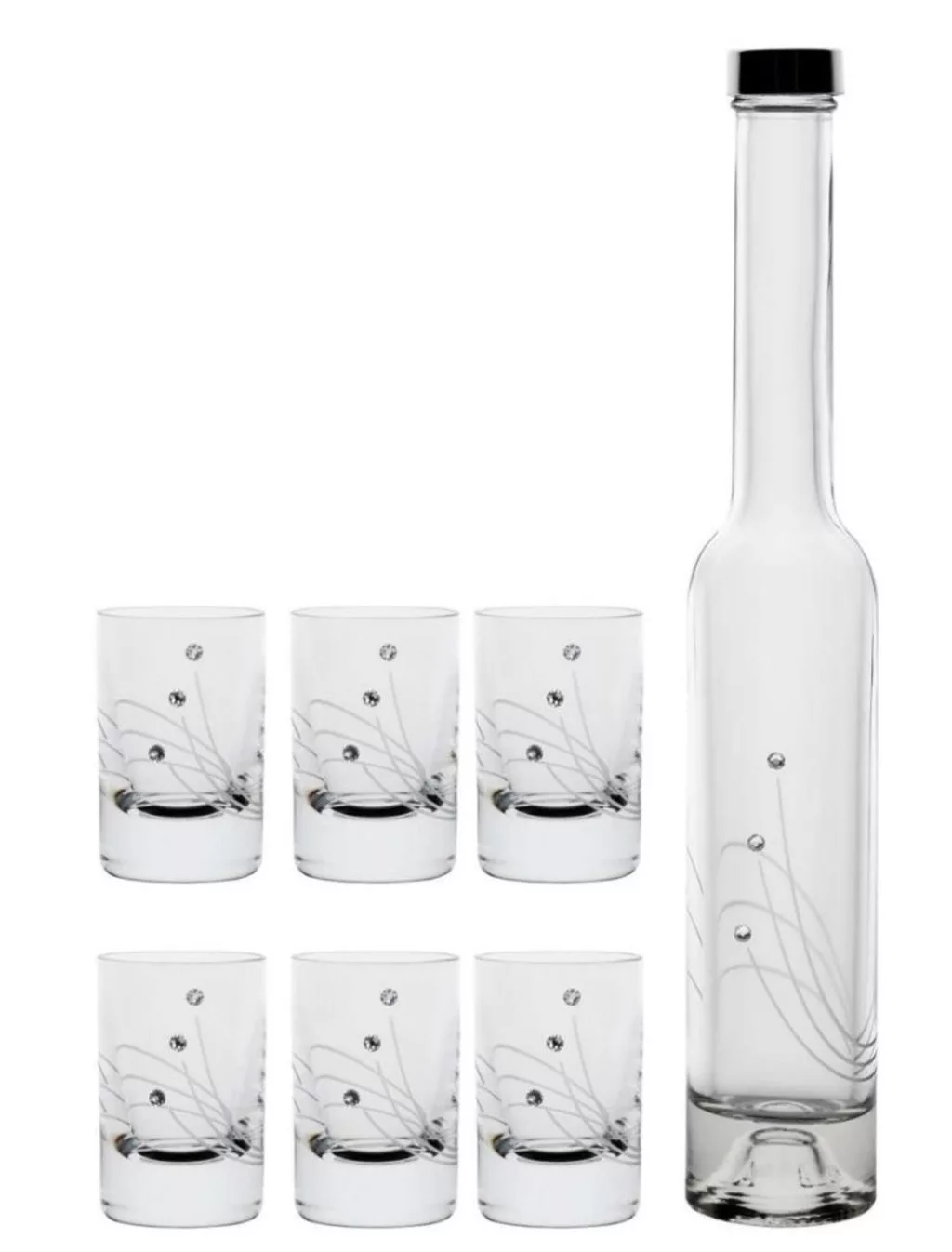 RÖVIDITALOS SZETT 7DB-OS (6DB FELESPOHÁR + 1 DB PÁLINKÁS ÜVEG), KRISTÁLYBERAKÁSS