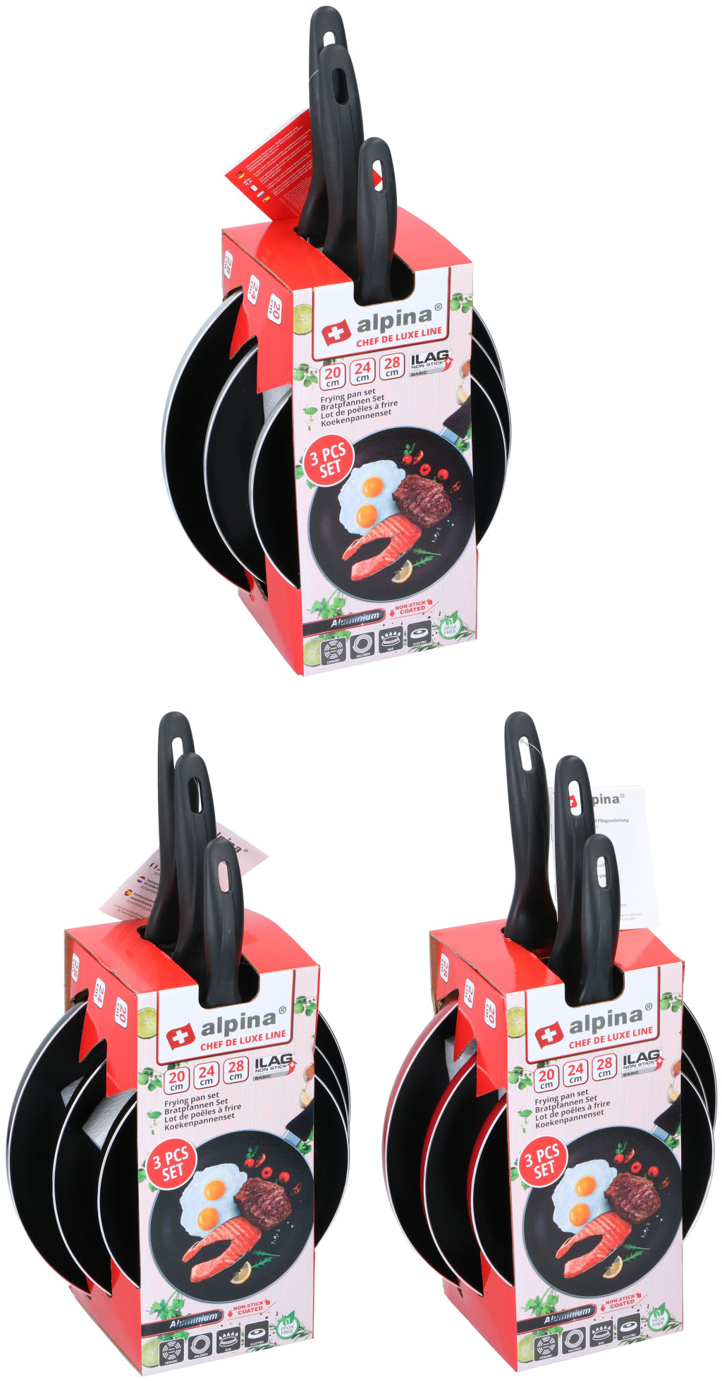 SERPENYŐ SZETT D: 20/24/28CM NEM INDUKCIÓS 3SZÍN