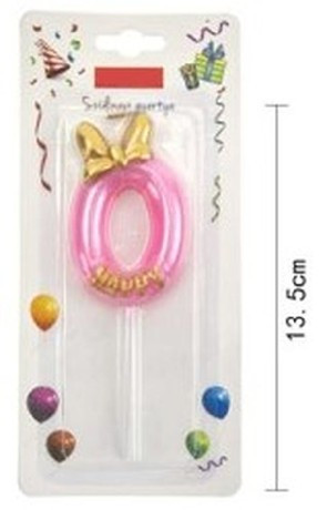 SZÁMGYERTYA "0" 13,5CM RÓZSASZÍN MASNIS