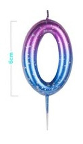 SZÁMGYERTYA "0" 6CM RÓZSASZÍ-KÉK ÁTMENTES