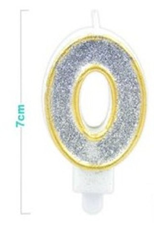 SZÁMGYERTYA "0" 7CM ARANY SZÉLŰ EZÜSTPOROS