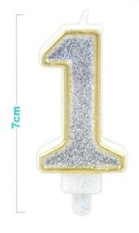 SZÁMGYERTYA "1" 7CM ARANY SZÉLŰ EZÜSTPOROS