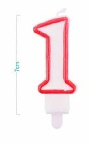 SZÁMGYERTYA "1" 9CM FEHÉR/PIROS SZÉLŰ