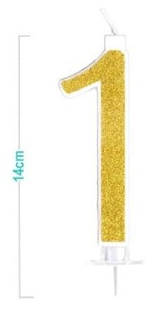 SZÁMGYERTYA "1" ARANYPOROS 14CM